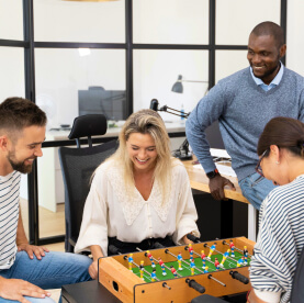 Our four R&D offices offer a gym, yoga mats, snacks, foosball, a VR set, and more for a comfortable workspace.
